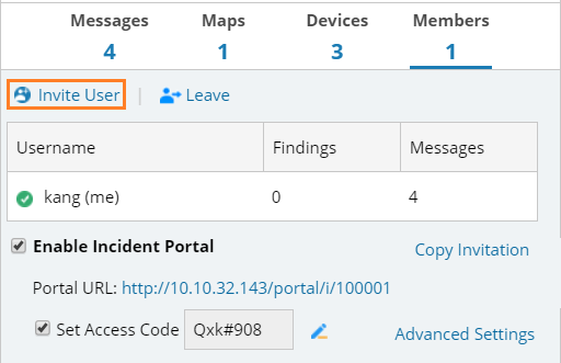 Note: See Inviting Others to Access an Incident for more details.