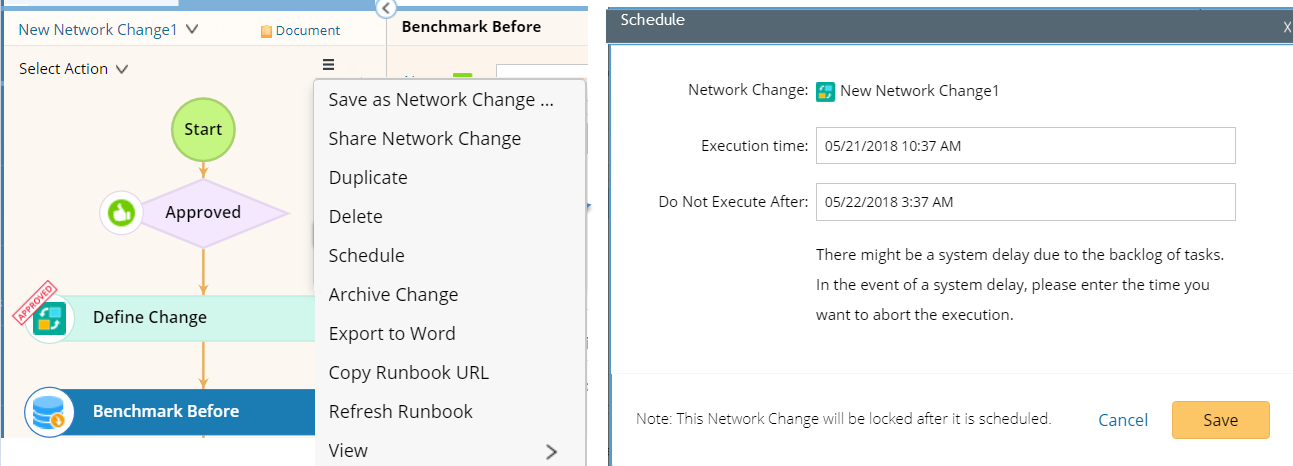 If you are managing network change tasks in a third-party system, you can also execute a network change task on schedule via REST APIs.