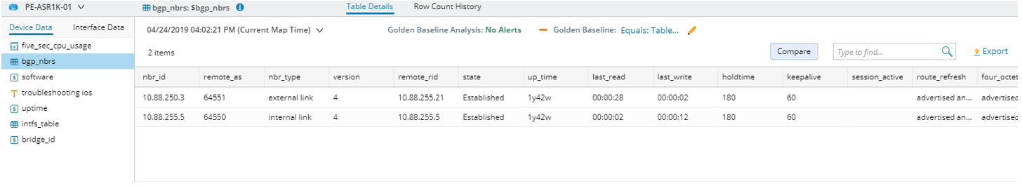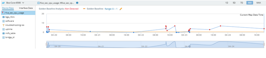 After Applying a Data View Template to a map, you can view not only the last copy of historical data and Golden Baseline, but also the live data analysis. When it doesn't match the Golden Baseline Rule, it will be highlighted in red color to alert users.