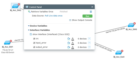 2)Select a device in the left pane, and adjust the variables on the device and interface labels.