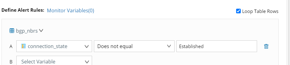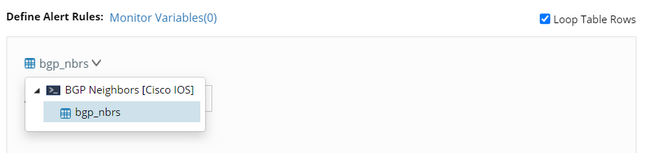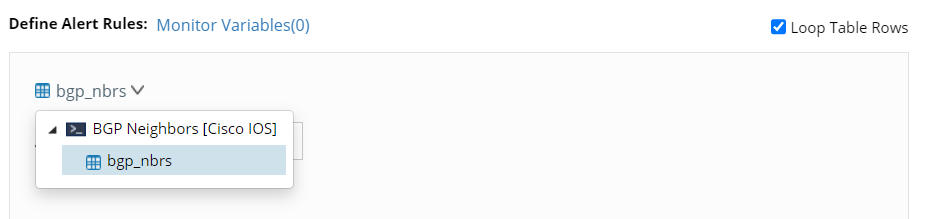 2.From the Define Alert Rules section, choose the table to be checked.
