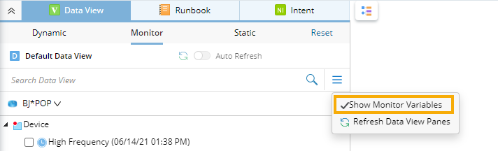 Selecting Show Monitor Variables option so all the Monitoring Variables will be displayed in Monitor Data View Pane.