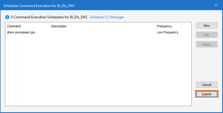 2.Click Submit. By default, this command is scheduled to be executed once a week.