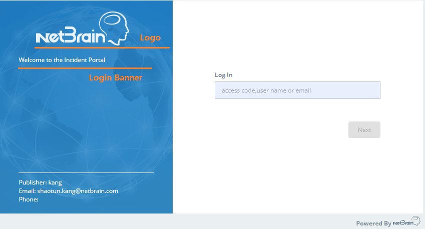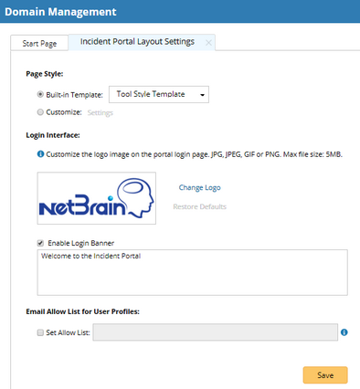 The system allows you to customize the layout template of Incident Portal within a domain, such as page style, customized logo, and login banner on the login page.