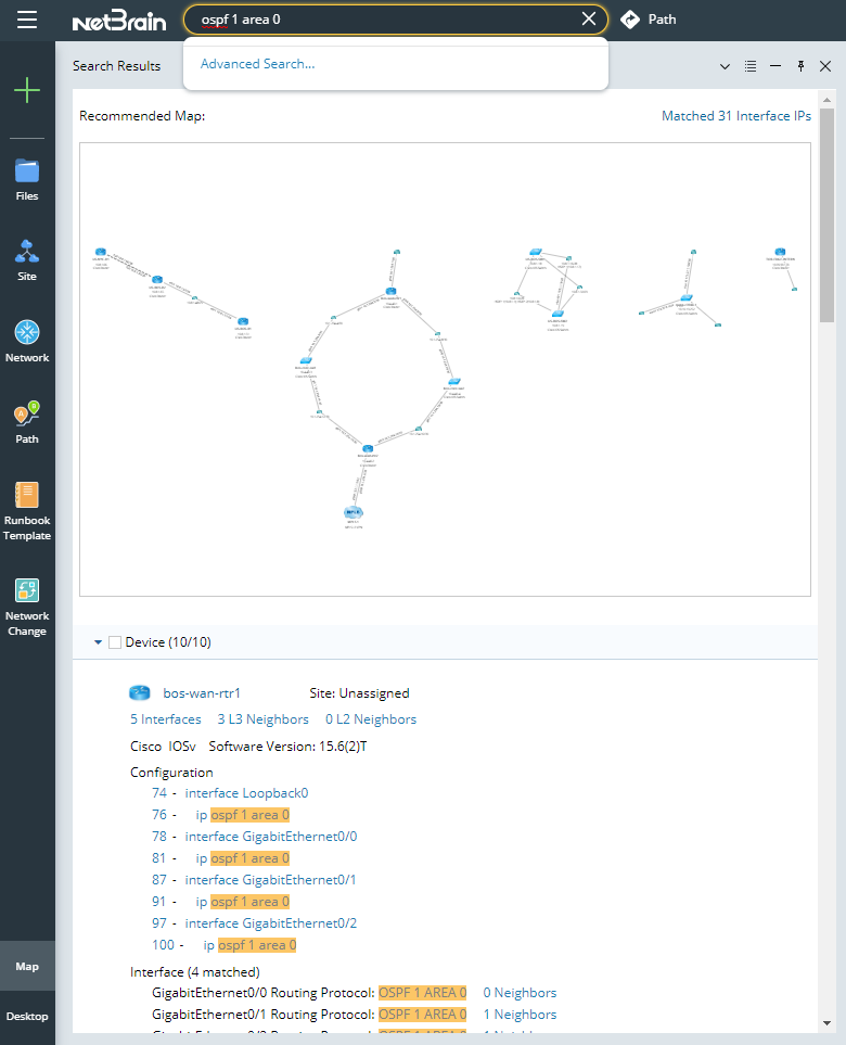 2.Press the Enter key on your keyboard to start searching. Devices and interfaces matching with the OSPF are diagrammed and auto-linked in a preview map.