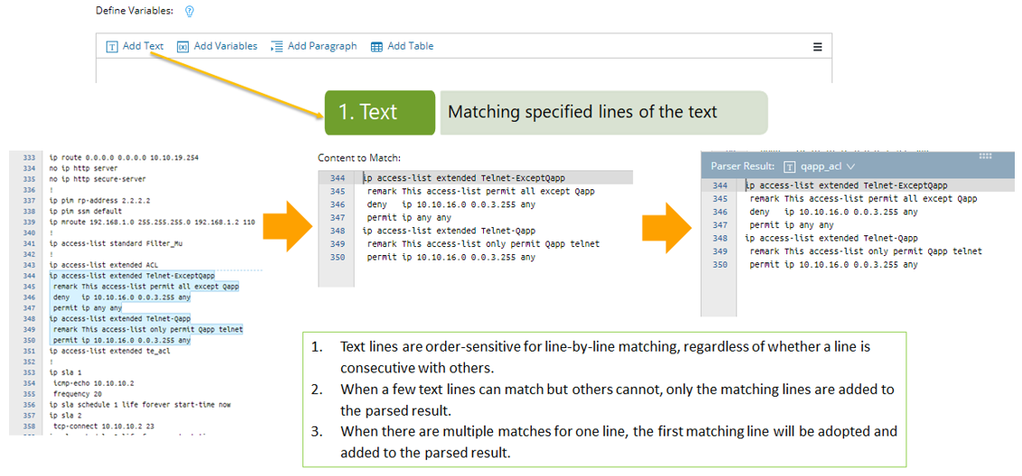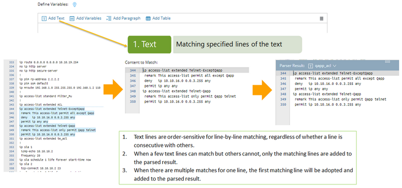 Paragraph parser can parse variables in recurring paragraphs, such as collisions and CRC errors for interfaces, etc., by anchoring paragraph identifier (ID) lines. See Define a Paragraph Parser for more details.
