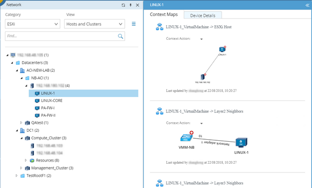 Tip: For more information about the vCenter context maps, see Context Maps of vCenter Nodes for details.