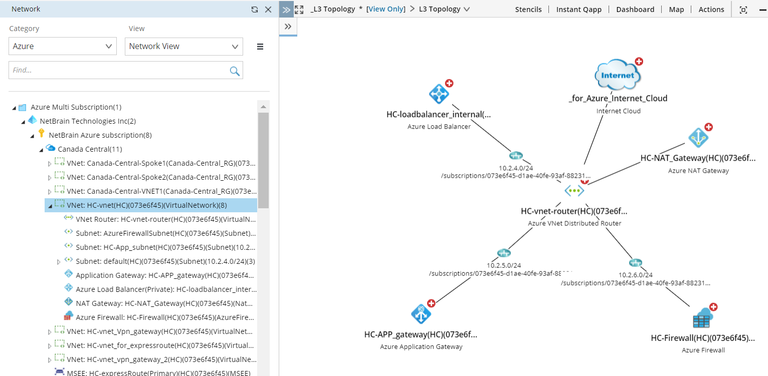 4.Select the interested object (e.g., Virtual Network, Subnet, Region, etc.)