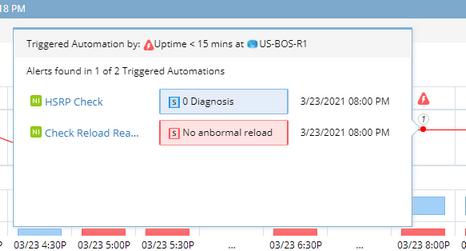 Clicking no-alert icon will pull up a summary view presenting the error code and execution time. If the number of grouped time points exceeds 5, only the oldest time point and 4 most recent time points will be displayed.