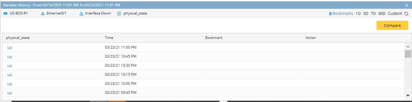 Tip: The compare function can be used to compare the data between 2 execution time points.