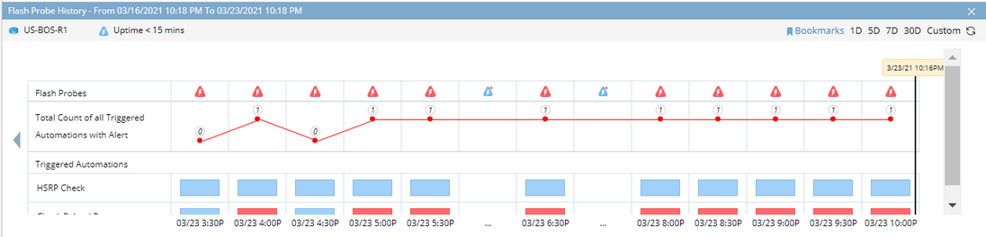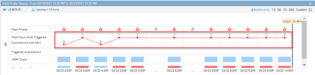 The Trend Chart can present the historical results of Flash Probe with respective triggered automation results.
