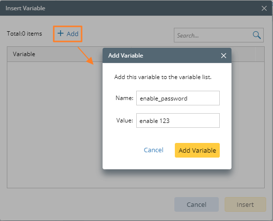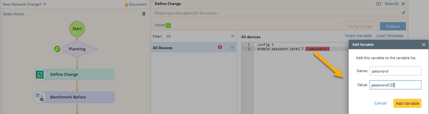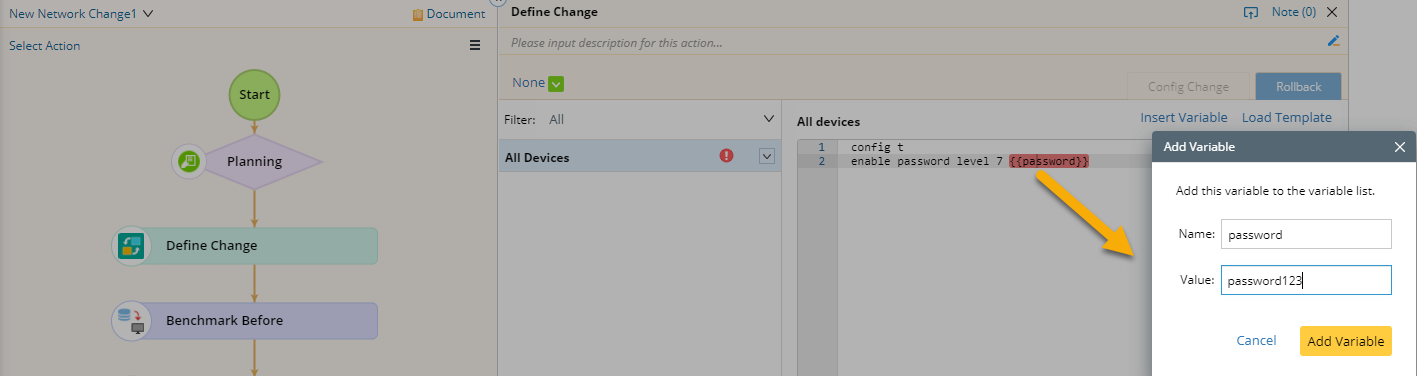 3)Enter the value of the variable. The value will be decrypted to form the actual commands sent to the device when the system executes the changes.