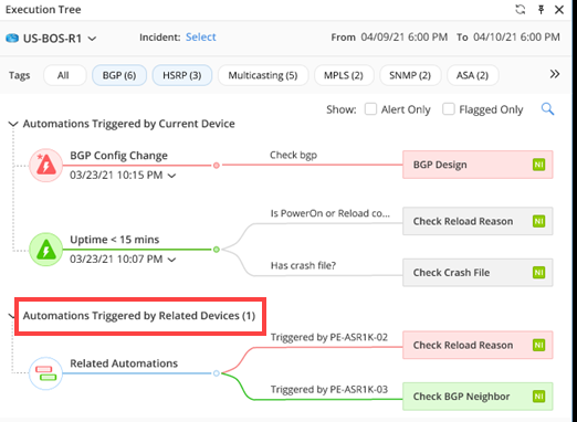If the device belongs to a triggered Network Intent, but the Flash Probe of this device is not defined to trigger this Network Intent, the Network Intent will be placed under Automations Triggered by Related Devices.