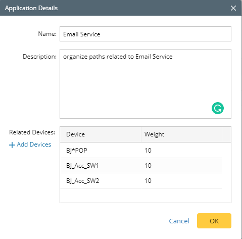 Tip: Each related device has a default weight value of 10, and you can double-click to modify the value. The weight is used to sort the application list order. See Application Weight for details.
