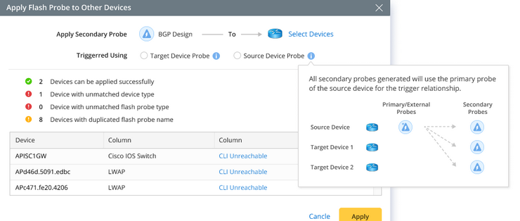 1.Select Apply Probe Definition to Other Devices in the drop-down menu of the desired secondary probe.