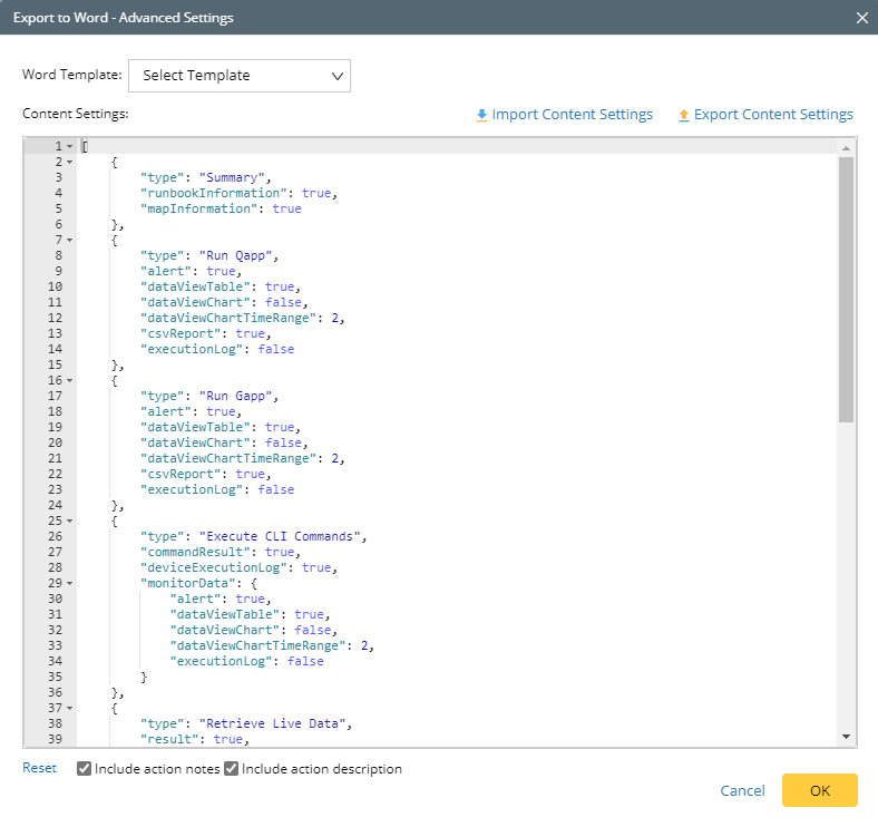 Content Settings determine what contents are included in the exported document. You can customize your document content by modifying the content settings. The parameter values true and false mean whether to export the corresponding content.