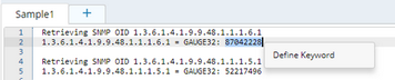 Note: In the Parser field of the Keyword Parser dialog, modify the default parser to 1.3.6.1.4.1.9.9.48.1.1.1.5.1 = GAUGE32: $int:var1$, and rename the variable name as used_memory.