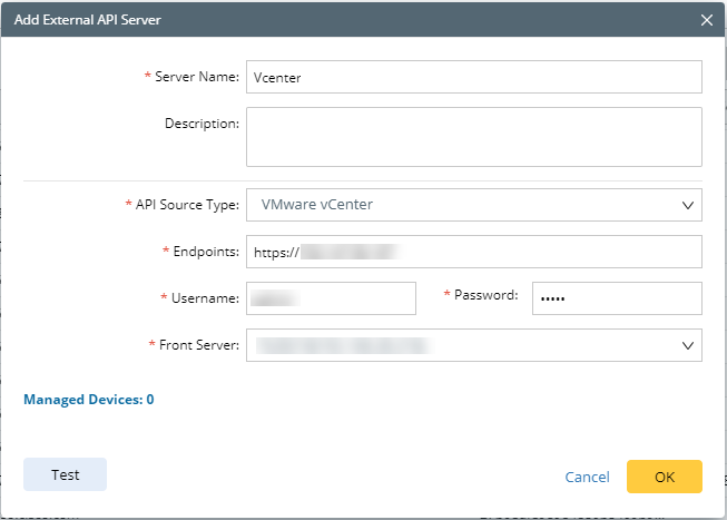 5)Select VMware vCenter from the API Source Type drop-down menu.