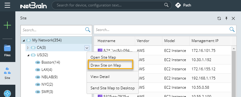 1.In the Site pane, right-click a site and then select Draw Site on Map from the drop-down menu.