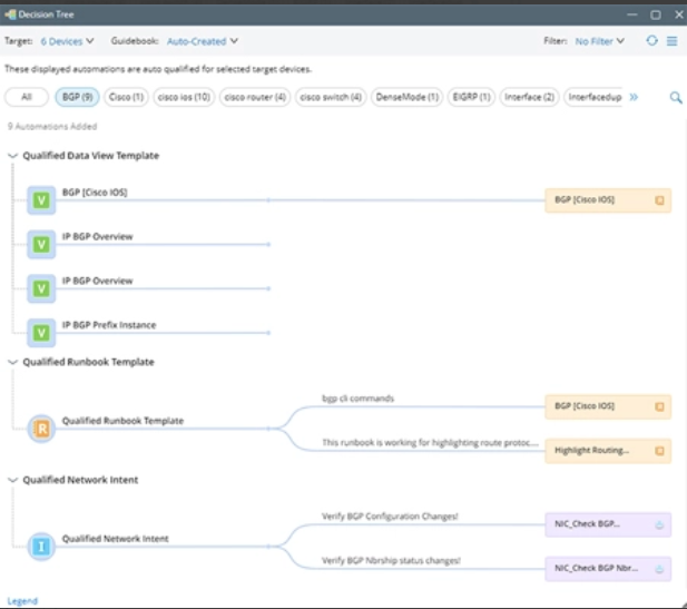 NetBrain captures and codifies the SME knowledge using Runbooks, Data Views, and Network Intents. Automatically capturing this information allows experienced engineers to codify and share their knowledge with junior staff, effectively shifting knowledge left, from experienced users to less experienced team members The next time the problem occurs, the runbook is executed by responders without in-depth knowledge or training. Even complicated network issues no longer need to be handled exclusively by experts. You are essentially using the knowledge of these highly skilled level-3 workers when they are otherwise unavailable (due to location or availability).