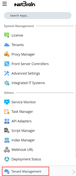 Tip: You can access Tenant Management Page from System Management Start Menu.