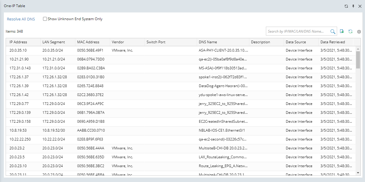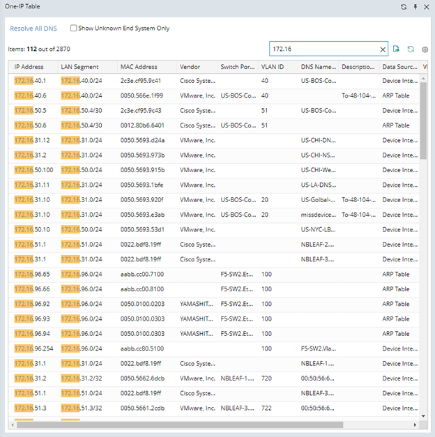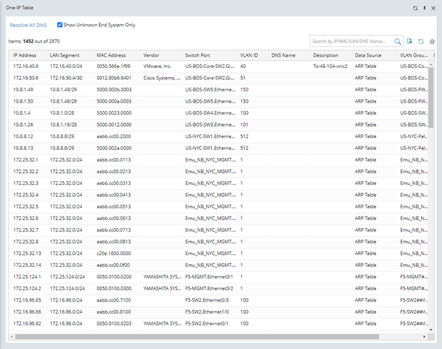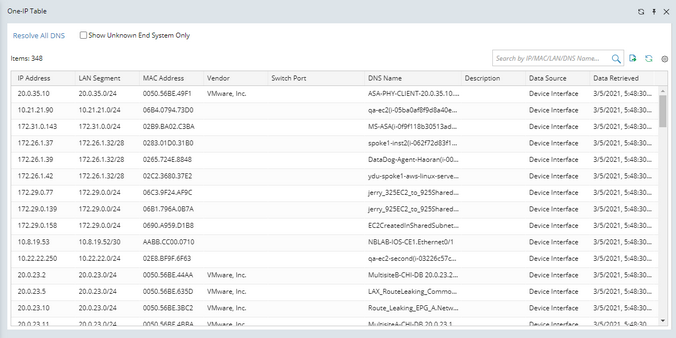 You can enable the Show Unknown End System Only checkbox to show only unknown end systems in the One-IP Table.