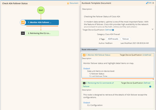 Example: Use the built-in runbook template Check ASA Failover Status to monitor the problem areas and display off-normal status on a map.