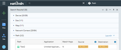 Note: If a path is calculated with IP addresses, it cannot be searched out by hostname keyword, and vice versa.