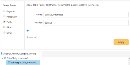 4)Click Apply and a node Table($passive_interfaces) is added under the node Filter($eigrp_passive).