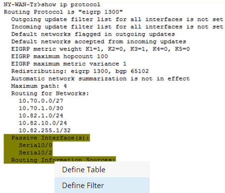 1)Select the node Filter($eigrp_passive) in the Parser Tree, and select Table.