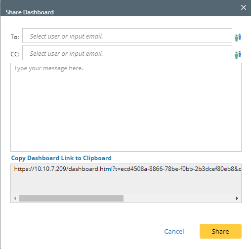 Tip: Click Copy Dashboard Link to Clipboard, and paste the link in any communication tools to share the dashboard with other users directly.