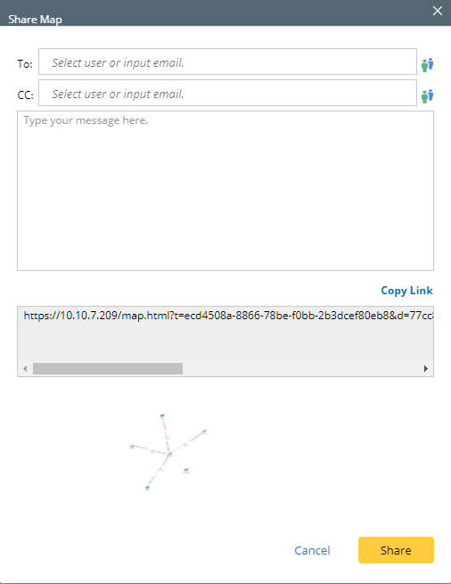 Tip: You can click Copy Map Link to Clipboard, and then paste the link in any communication tools to share the map with other users directly.