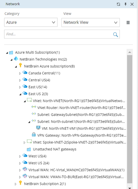 4.Select the interested object (e.g., Virtual Network, Subnet, Region, etc.)