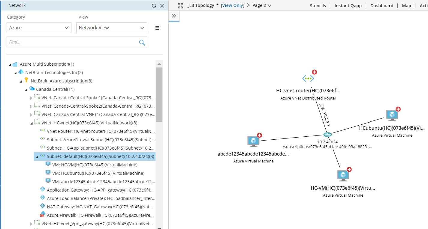 This context map helps you understand the relationship of resources within the same virtual network. The virtual machine will not be mapped by default due to its massive number. |