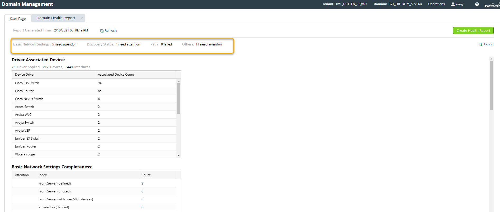 Domain Health Report records the key factors about domain health. You can get a quick overview of the current domain status with this report.