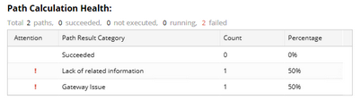 This area shows the summary of path calculation, such as the count of total paths, the count of paths that are successfully calculated, and the count of paths that are not calculated. The status pane is categorized by Succeeded and the causes of failure.