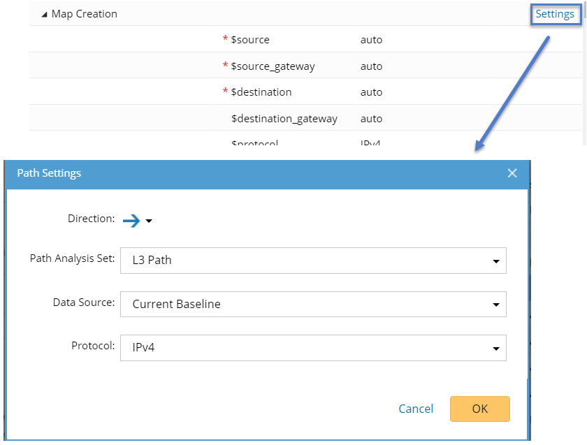 Tip: If you create a map by mapping a path, click Settings of Map Creation to define path analysis set, data source, direction, and protocol.