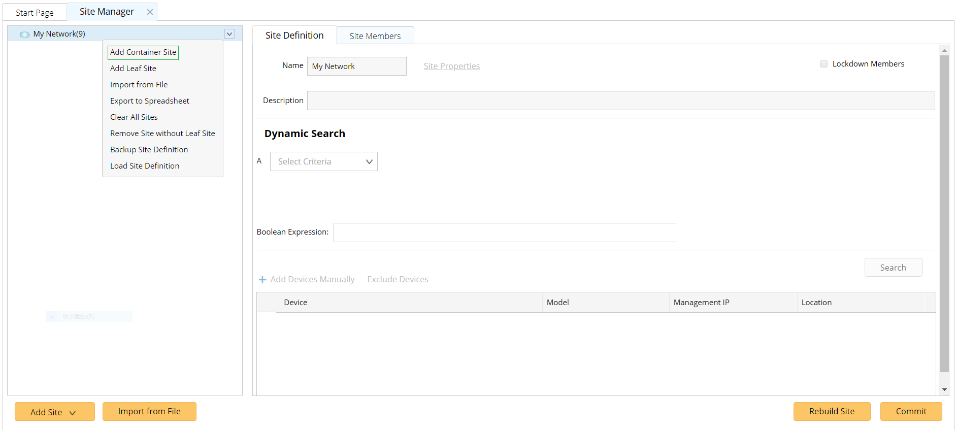 Tip: You can add one or more container sites or leaf sites to a container site. However, you cannot assign any devices to a container site directly.