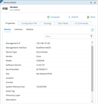 Device Property refers to configure the attributes for devices, interfaces or modules in the Properties tab of the Device Details pane.
