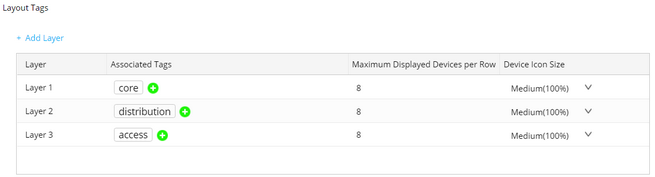 icon to create a layout tag. Enter core, distribution, and access as tag names respectively. The tags will be used to associate layout layers with devices.