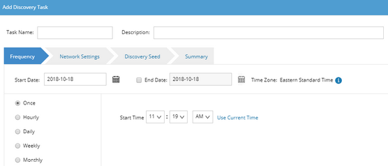 ▪Frequency — specify the execution frequency for the task. By default, it is Once.