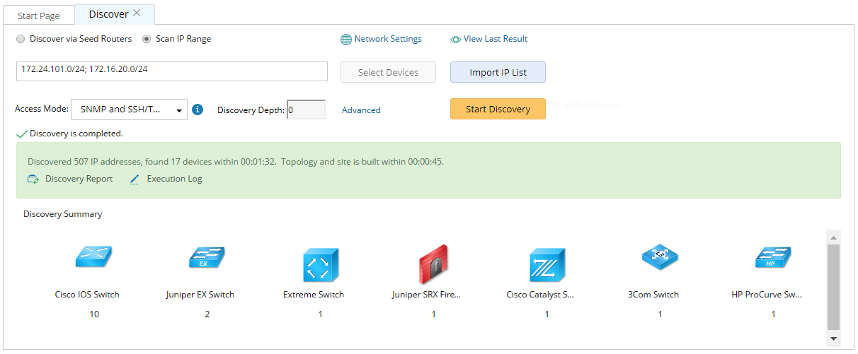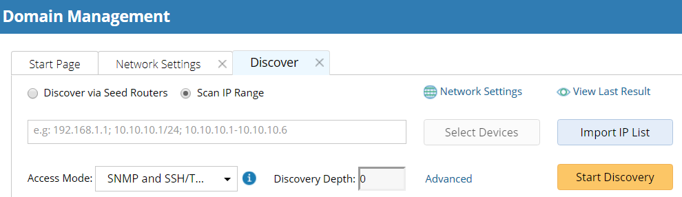 Note: Network Definition is recommended as a workaround if SNMP is not accessible on certain devices temporarily when using Discover via Seed Routers.