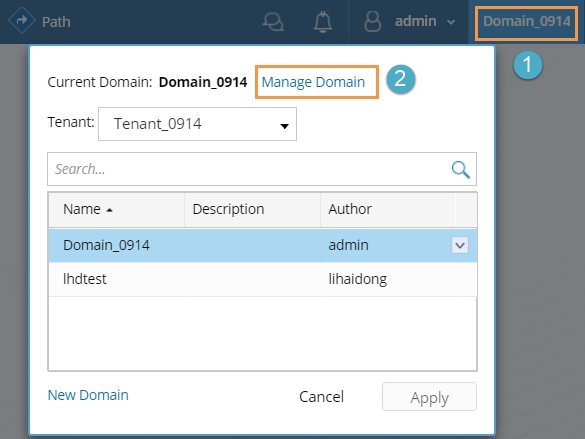 1)Click the domain name from the quick access toolbar and select Manage Domain to enter the Domain Management page.