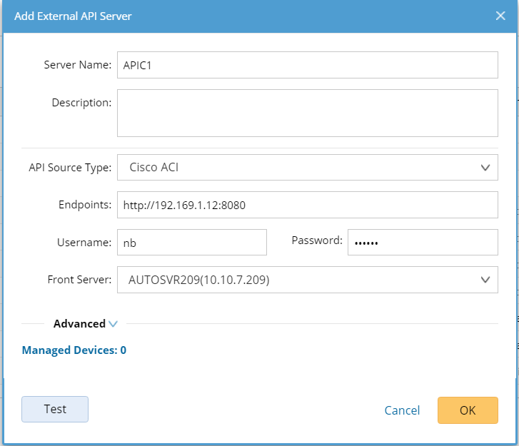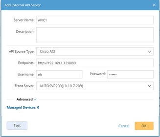 5)Select Cisco ACI from the API Source Type drop-down menu.