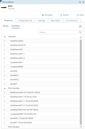 Both built-in and customized interface properties for different topology types are stored in the Global Data Repository. You can browse, modify, and export the values of interface properties for each device from the Device Details pane.