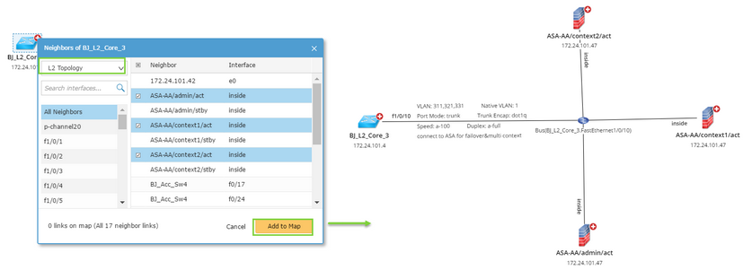 Layer 2 topology links can be drawn on the same map page with layer 3 topology links, by extending neighbors or auto link.