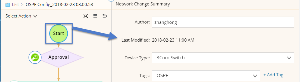 ▪Tag — filter network change templates by specified tag (only if it has been defined in the Start node of a network change template).