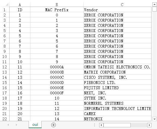 1)Click Add at the upper-left corner. 2)In the Add OUI Information dialog, enter the MAC prefix and vendor name, and then click OK. |