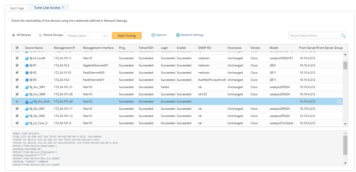 Tuning live access enables you to check the reachability of live devices by polling the credentials configured in the Network Settings or verifying the credentials in the Device Settings. You can tune live access to synchronize login credential, vendor and model changes, and check hostname changes if they occur in your network.