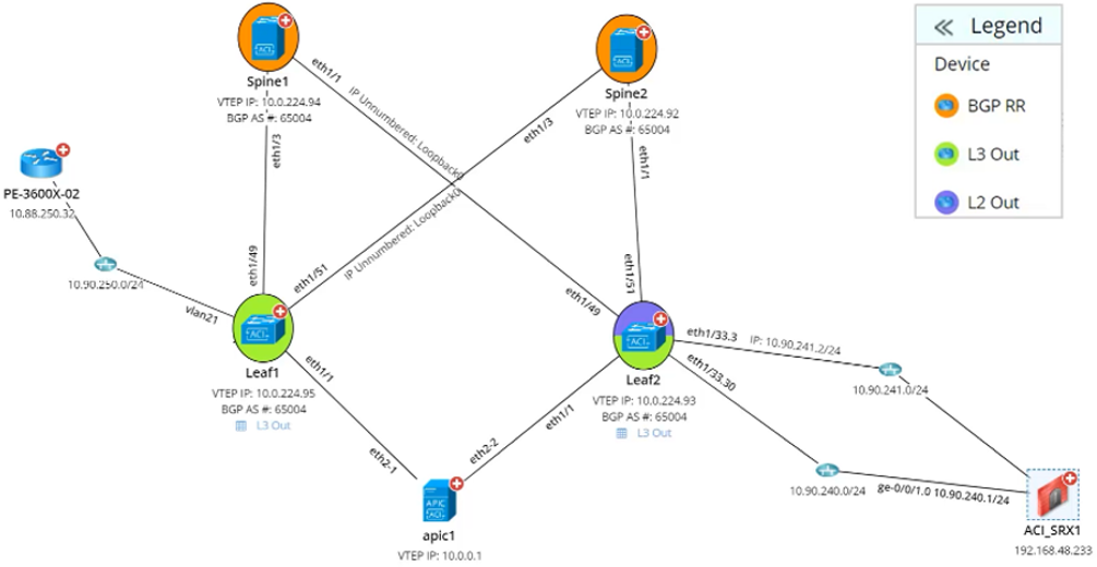 Example: A Visualized Topology Map of a Cisco ACI Fabric.